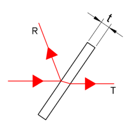 A plate type (mirror-type) beamsplitter is an optical window with semi-transparent mirrored coating to break a beam into two or more separate beams. A beamsplitter will reflect a portion of the incident energy ( see reflection %), absorb a relatively small portion, and transmit the remaining energy (see transmission %). Beamsplitter plates have very neutral color characteristics and are often referred to as beam-splitters plate.