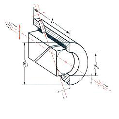 Glan Laser prism polarizer is made of two same birefringent material prisms that are assembled with an air space. The polarizer is a modification of the Glan Taylor type and is designed to have less reflection loss at the prism junction. The polarizer with two escape windows allow the rejected beam to escape out of the polarizer, which makes it more desirable for high energy lasers. The surface quality of these faces is relatively poor as compared to that of entrance and exit faces. No scratch dig surface quality specifications are assigned to these faces. The polarized field F1 and F2 of these is shown in the plot below.