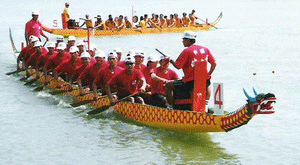 The dragon-boat races symbolize the many attempts to rescue and recover Qu’s body. A typical dragon boat ranges from 50-100 feet in length, with a beam of about 5.5 feet, accommodating two paddlers seated side by side.