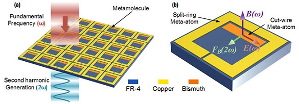 该研究成果中提出的人工材料基于一个巧妙设计的人工超构分子(metamolecule)内部电场和磁场的耦合,打破了材料物理环境的空间对称性,从而实现了人工设计的光学非线性。其非线性完全源于人工超构分子,而无需自然光学非线性材料参与,因此可以通过改变人工结构,对所产生的光学非线性进行精确的设计和调控。同时,该人工非线性理论的物理过程明确且清晰,可应用于非常宽的电磁频谱。相关研究结果表明,通过适当的缩放超构分子结构的几何尺寸,在微波到红外波段均可以产生明显的光学非线性。这一全新的人工理论,使得光学非线性具有了前所未有的设计自由度,将促进新一代光源及光信息技术的快速发展,同时也将促进如非线性光学透镜和非线性全息等新技术的产生和发展。