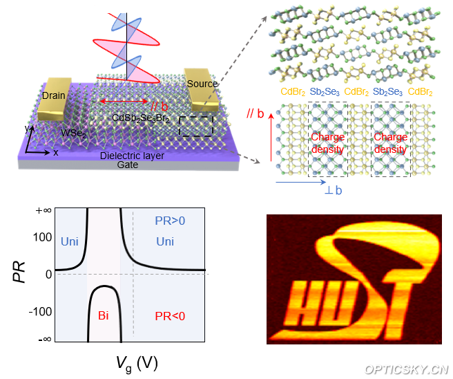 图1. CdSb2Se3Br2/WSe2异质结实现可重构的高PR值偏振光探测器。