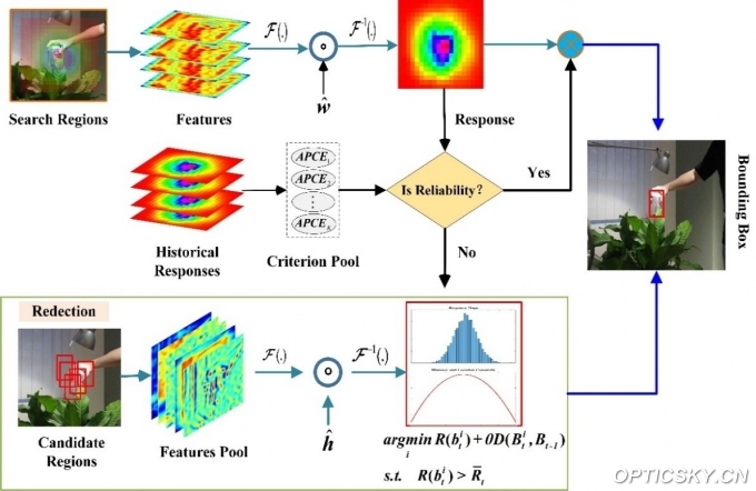 对此,研究团队基于前期提出的稀疏上下文感知的相关跟踪滤波框架,创新性地构建双模态耦合优化机制。该机制通过上下文感知协同建模与动态畸变自适应抑制的联合约束策略,构建具有背景抗扰性与外观稳定性的新型相关滤波器。研究团队在DCF框架中显式集成上下文信息,既能感知目标周围背景变化又可削弱外部干扰的影响;同时通过约束检测阶段的响应图梯度,保持滤波器内部结构的稳定性。此外,团队还提出一种基于历史响应池反馈的高度协调机制,在确保目标模板高置信度更新的同时,为目标重捕获机制提供引导策略,进一步提升复杂场景下跟踪的鲁棒性和准确性。