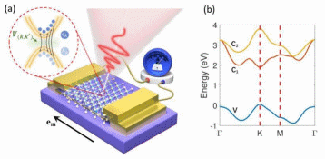少周期激光脉冲驱动单层MoS2产生定向光电流的原理示意图