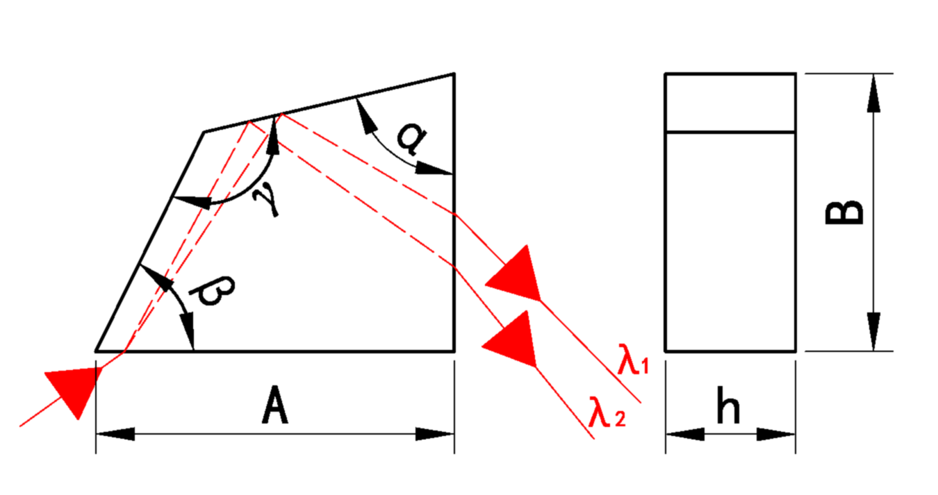 佩林●布洛卡棱镜通常用来分离同一束激光中的不同波长的激光束,由于入射光束和出射光束都工作在布儒斯特角,所以佩林●布洛卡棱镜的P偏振光的损失非常小,同时出射光束和入射光束夹角为90度。